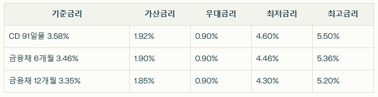 -가산금리: 신용등급, 대출기간 등에 따라 차등 적용